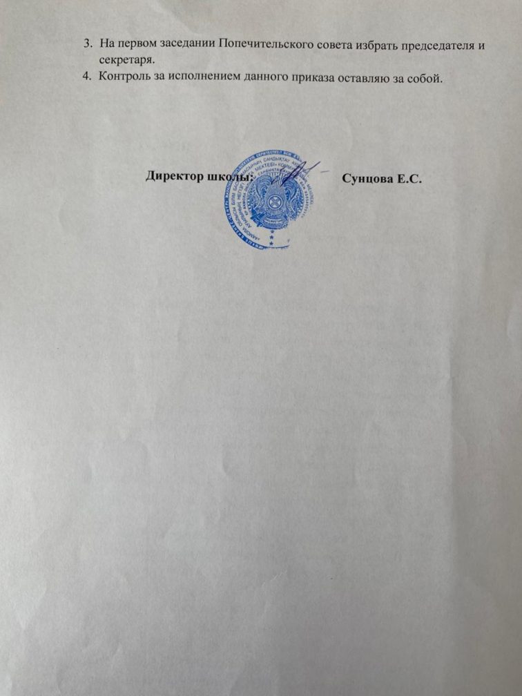 Қамқоршылық кеңесінің құрмамын бекіту туралы бұйрық