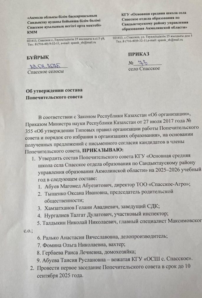 Коммунальное государственное учреждение "Основная средняя школа села Спасское отдела образования по Сандыктаускому району управления образования Акмолинской области"